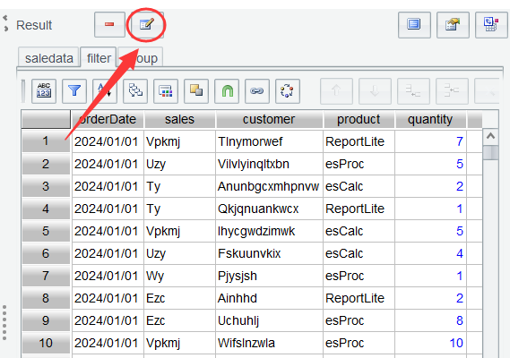 Obviously, you need to regroup filter table by product and perform count. The default-generated table name, after multiple computations, becomes easy to confuse or makes it easy to get confused which step the current table belongs to. To avoid the confusions, the filter table is renamed data2024 , a business meaningful name. Select filter and click Rename icon: