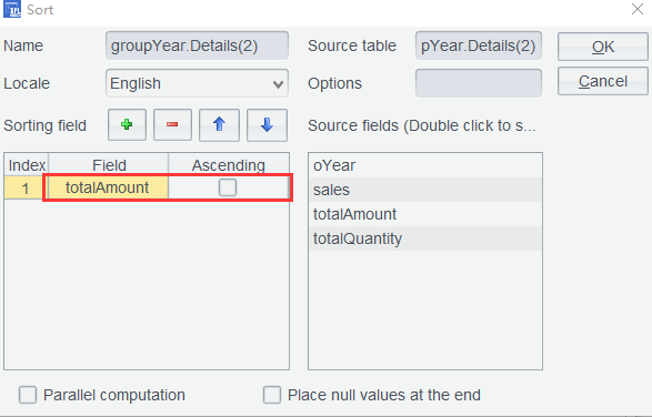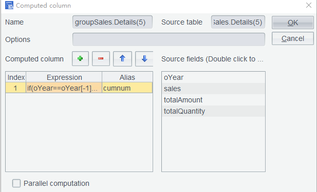 Since yearTop3 ’s oYear column is already ordered, no sorting operation on it is configured for adding a computed column in the details table. Click OK and the cumulative count of appearances on the rankings are computed for all details tables: