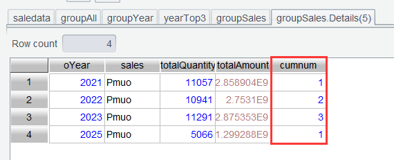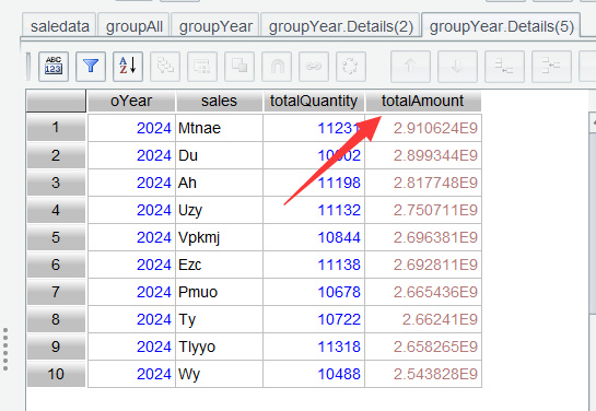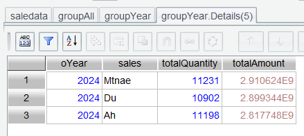 The 2024 details table is also sorted by totalAmount . Now the annual top3 can be obtained.