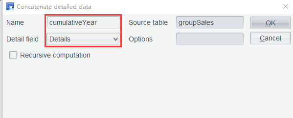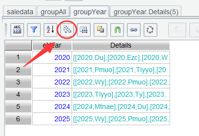 Step 5: Select table groupYear and click Concatenate Details Data icon (as shown below):