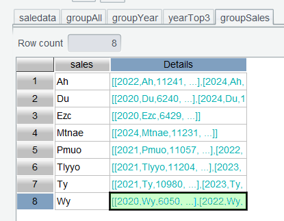 At this point each year’s details table under groupYear has been filtered and their top3s have been obtained. Yet these details tables are still subtables and inconvenient to view.