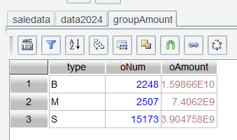 Step 2: Perform grouping on data2024 by setting grouping expression if(amount>=5000000:"B",amount>=1000000:"M";"S"):type: