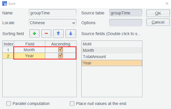 Step 2: Sort groupTime table by Month and Year in ascending order:
