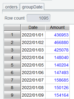 Step 1: On orders table, use expression date(orderTime):Date to remove the time part of the date value and configure grouping by date: