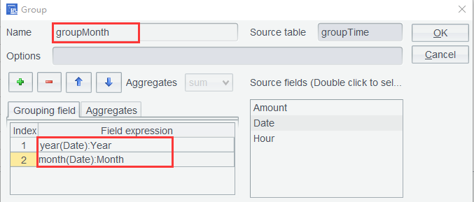 Step 2: Set grouping fields through grouping expression year(orderTime):Year and month(orderTime):Month on orders table: