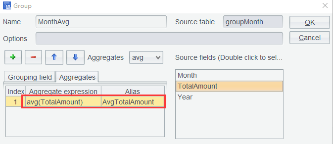 Since we just need the target summary table, there is no need to add a year-month computed column. You can directly use year-month expression as the grouping expression to group orders records.