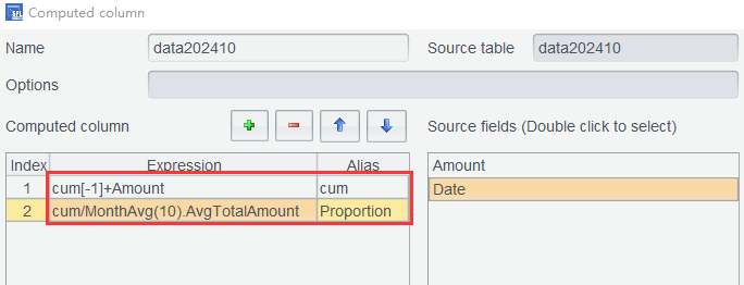 Step 5: Add a computed column in data202410 to compute the cumulative amount for each date while computing the proportion of the cumulative amount in the average total: