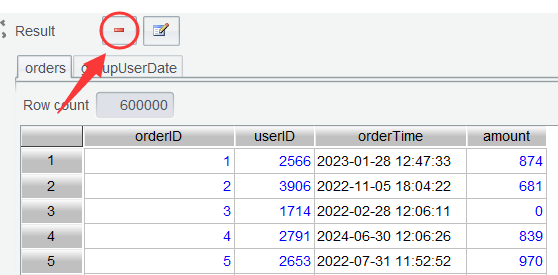 The subsequent analysis only needs the groupUserDate table. Select orders , click Delete icon and delete it to release memory space: