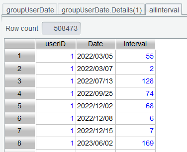 By comparing the table’s row count with the row count in lastInterval , we find that more than half of the customers need special attention, which aligns well with our analytical expectations.