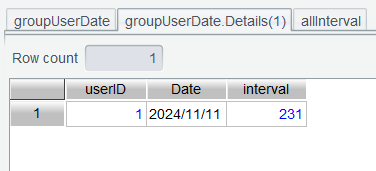 Step 4: Perform Concatenate details data on groupUserDate table to concatenate all records as allInterval :