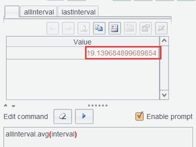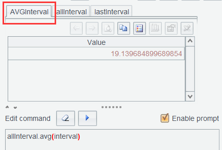 This value will be used in expressions in the subsequent computation. Since a result set obtained from executing a command in the Edit Command Zone by default does not have a name, we need to give it a name for later reference. As Section 3.8 does, we name it AVGInterval :