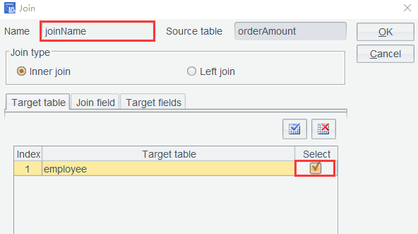 Step 2: In standard salary table ( standard ), click Join icon to select two target tables, as the following screenshot shows: