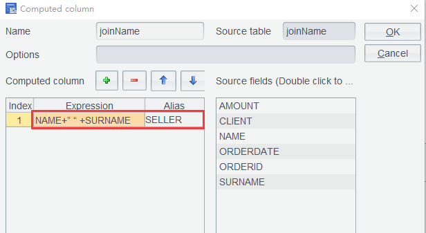 Step 2: Add a computed column in joinName table and use expression NAME+” “+SURNAME to generate its values: