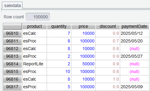 The table contains unpaid orders (where paymentDate value is null ). Use a filter expression again paymentDate!=null to remove records of the unpaid orders: