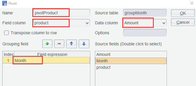 Note: As product is a function keyword in SPL, an underscore is automatically added before it to differentiate from the keyword “product”. It is important that you do not change the table name back to one namesake with the keyword, otherwise error will be reported later during computing the expression and probably you will not even figure out the cause.